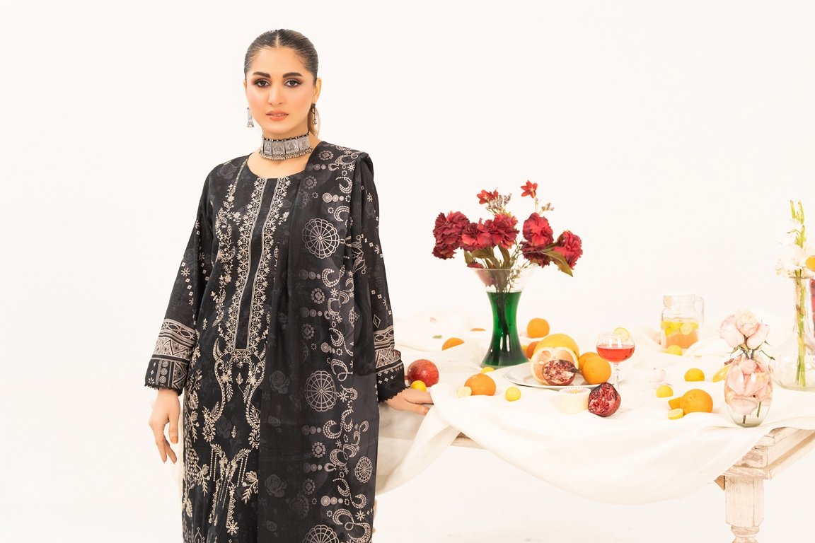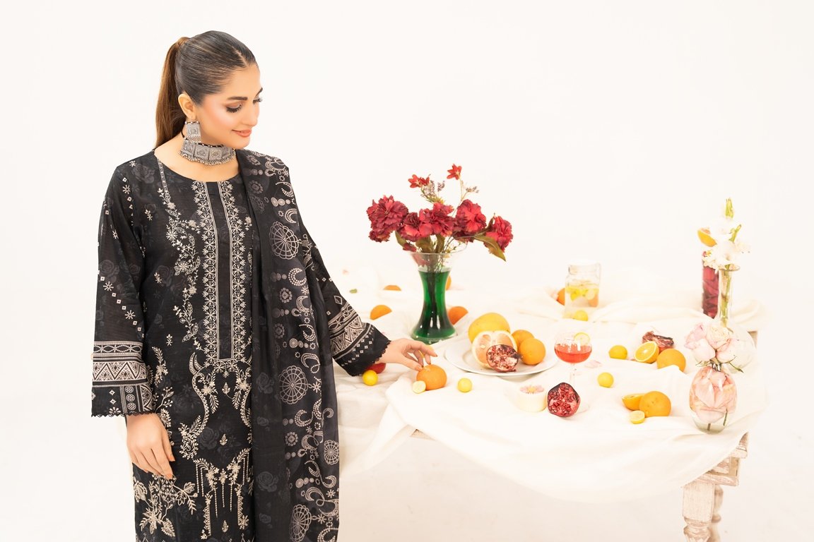 . DIGITAL PRINT & EMBROIDERY BANA DORA SHIRT. DIGITAL PRINTED AIRJET DUPATTA. DYED PLAIN TROUSER