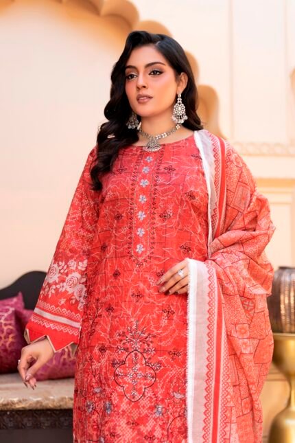 . DIGITAL PRINT & EMBROIDERY BANA DORA SHIRT. DIGITAL PRINTED AIRJET DUPATTA. DYED PLAIN TROUSER
